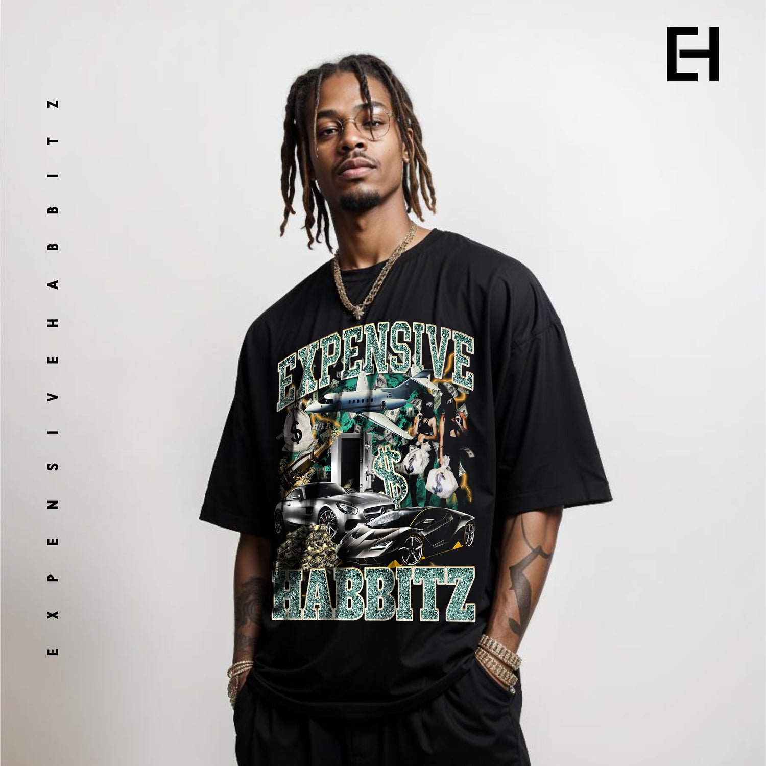 Expensive Habbitz “EH” Black Cotton Men's Tee